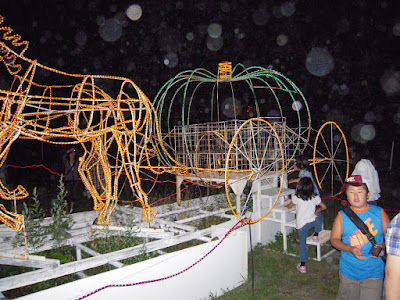 動物や乗り物に似せて、綺麗にライトアップされています。